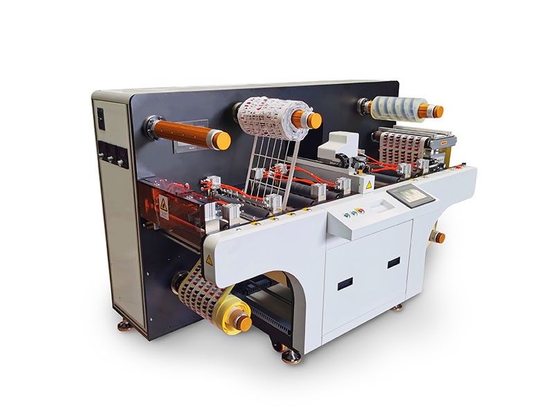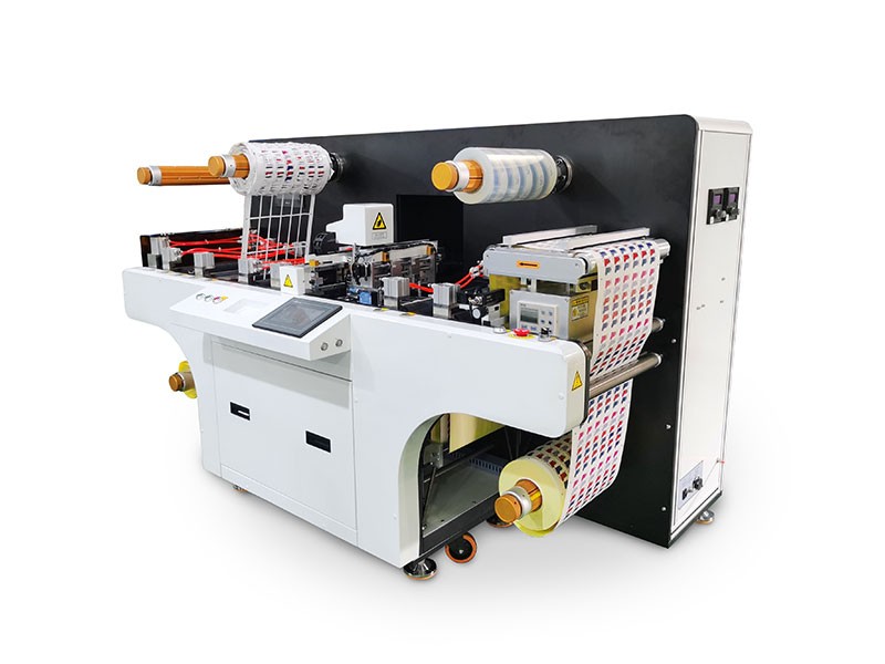 The label die-cutting machine features automatic rectification for precise, continuous cutting, a touch screen with an easy-to-use operating system, and multi-head cutting of up to three heads simultaneously for high efficiency. Its platform suction system supports both kiss cuts and full cuts, while integrated functions include waste removal, slitting, collecting, laminating, re-laminating, and single-sheet cutting. With imported wire rails and high-precision motors, it delivers stable and accurate performance. This machine is ideal for processing custom label rolls and flexible materials across multiple industries: producing high-speed, precise labels for food, beverage, and cosmetics; meeting strict pharmaceutical and medical labeling requirements with inline digital printing, multi-head cutting, and automatic waste stripping; efficiently handling logistics, retail, and asset labels with fast slitting and single-sheet output; and performing precise die-cutting of industrial identification and special materials such as electronic nameplates, automotive parts, and flexible films. Its automatically adjustable cutting heads and high precision ensure reliable, versatile, and efficient label production.